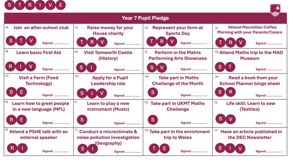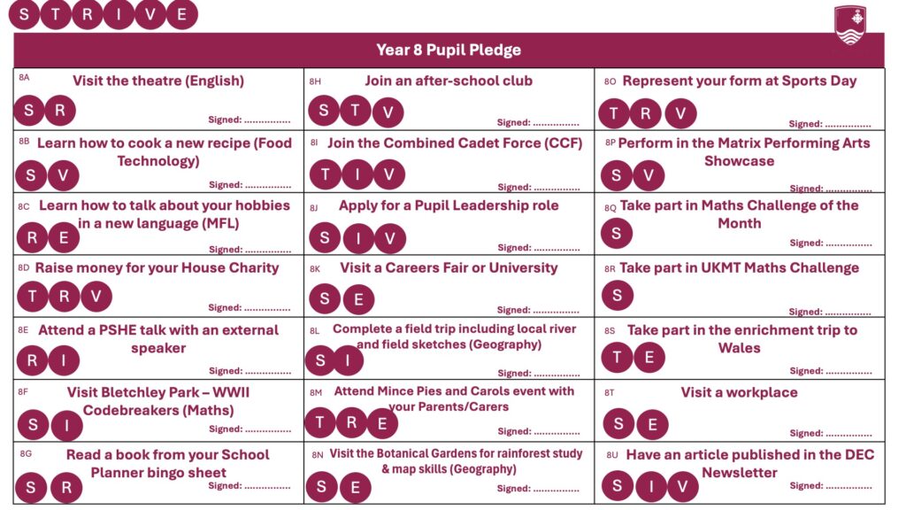 That belief sits at the heart of our DEC Pupil Pledge and is rooted firmly in our STRIVE school values. The pledge is our commitment to ensuring that every pupil leaves our school having accessed a rich range of experiences that complement the curriculum and help to close the cultural capital gap. This is about equity, not extras.